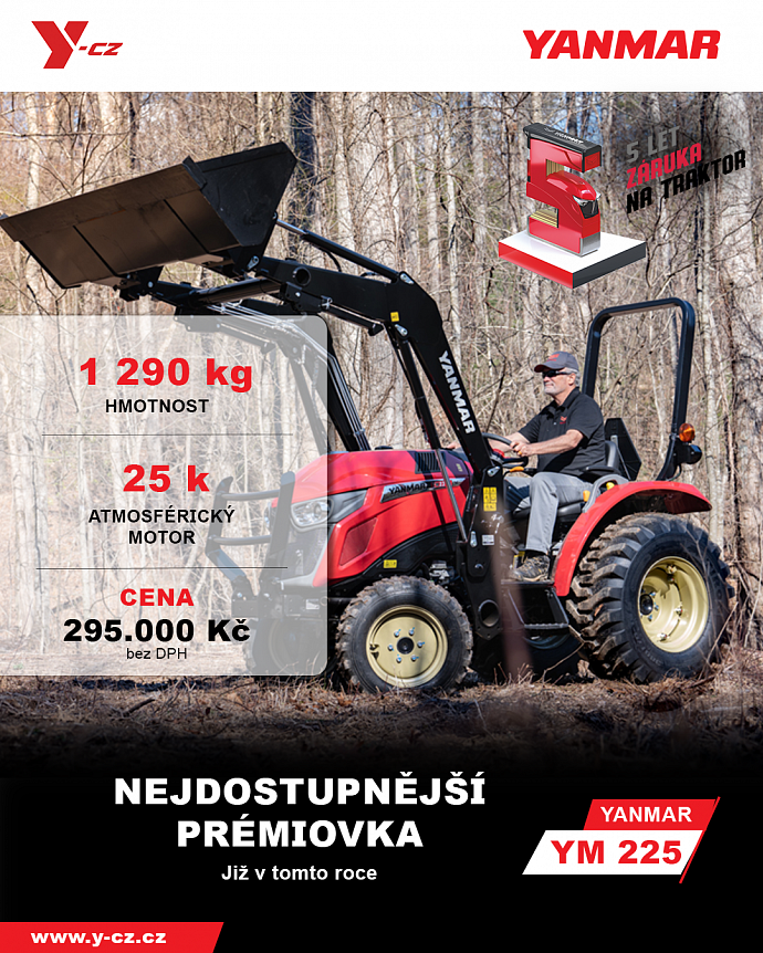 Yanmar YM225 letos přichází jako novinka v kategorii kompaktních traktorů. Nabízí spolehlivý dieselový motor, snadné ovládání a robustní konstrukci, která zvládne práci na poli, zahradě i v komunálních službách. Díky kompaktním rozměrům a vysoké obratnosti je ideální volbou pro menší farmy, sady i údržbu pozemků.